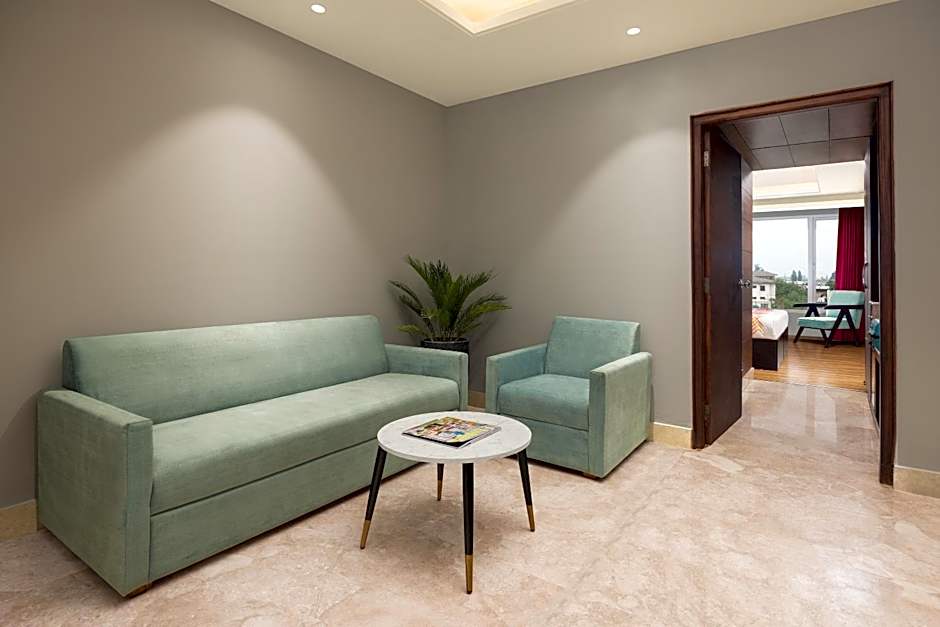 The air-conditioned suite features 1 bedroom and 1 bathroom with a bath and a shower. The suite provides a flat-screen TV, a tea and coffee maker, a dining area, a wardrobe as well as city views. The unit offers 1 bed.